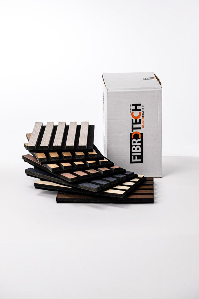 Vanwege het hoge gehalte hout in de akoestische panelen, kunnen ze een beetje naar vers gezaagd hout ruiken. Laat ze daarom voor het plaatsen eerst acclimatiseren.